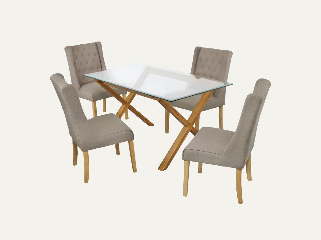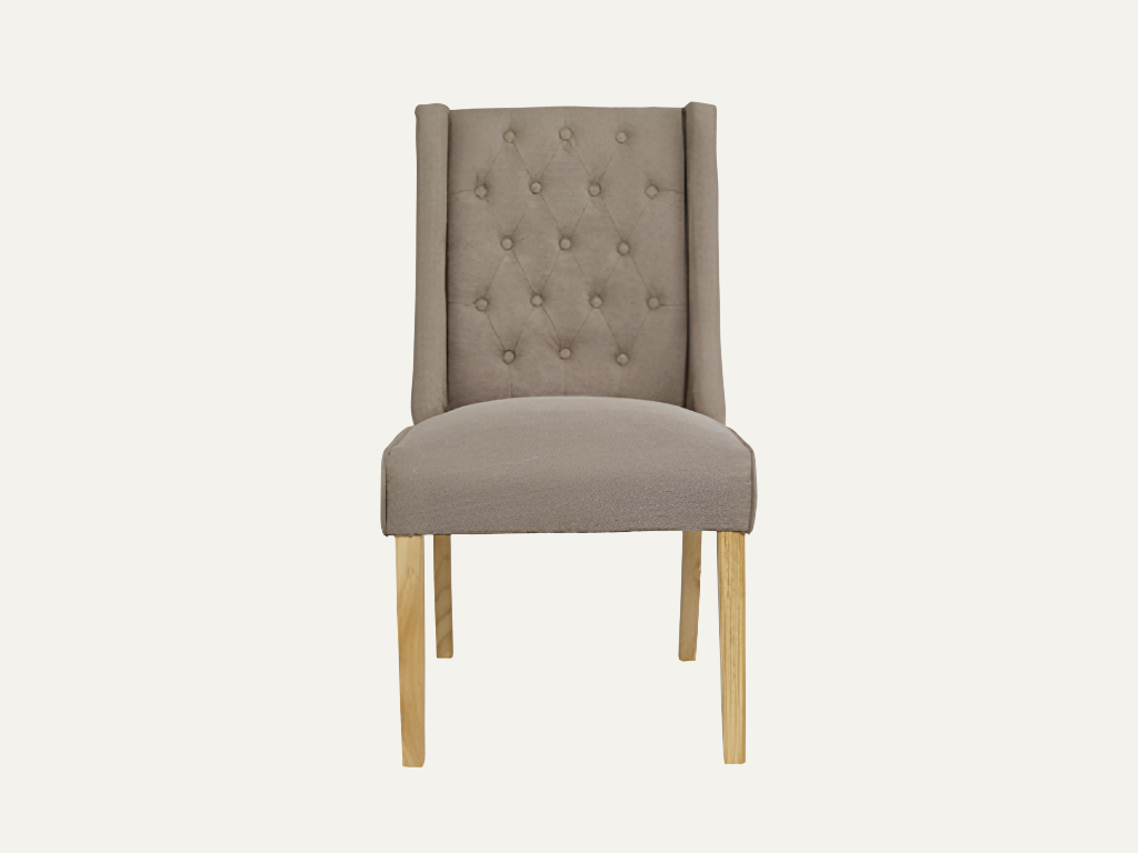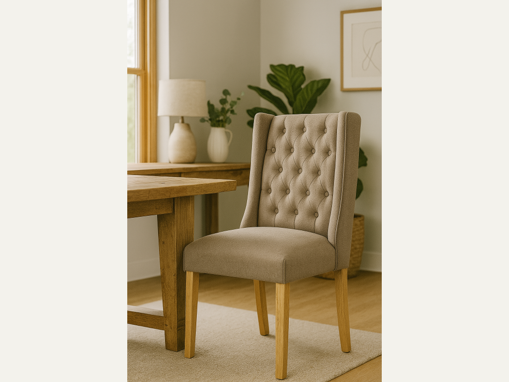 Exuding timeless elegance, the Verona Chair artfully balances classic design with contemporary sensibility. Its distinguished silhouette features a subtly winged, curved backrest complemented by gracefully arched rear legs. The refined button tufting and meticulous quilted detailing elevate its aesthetic, while the sumptuous beige linen-style upholstery ensures versatile integration with diverse dining settings. A sophisticated statement piece that transforms ordinary dining experiences into moments of distinguished comfort.