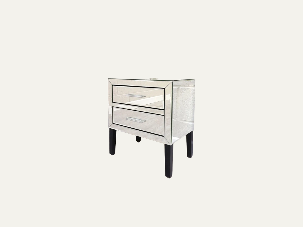 Mirrored Glass 2 Drawer Bedside Table